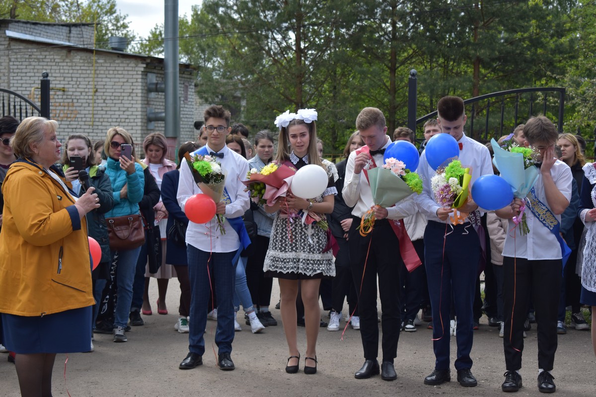 Первоклассники рассказали для выпускников стихи. Старшеклассники поблагодарили всех учителей и работников школы, потом станцевали вальс. Лидер РДШ Дарья Богачева и победитель муниципального этапа Всероссийской олимпиады среди школьников Артем Мельник дали последний звонок.