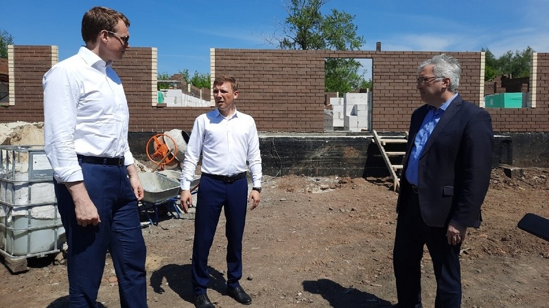 Глава региона вместе с министром культуры Виталием Поповым и главой района Михаилом Ромодиным осмотрел строительную площадку.