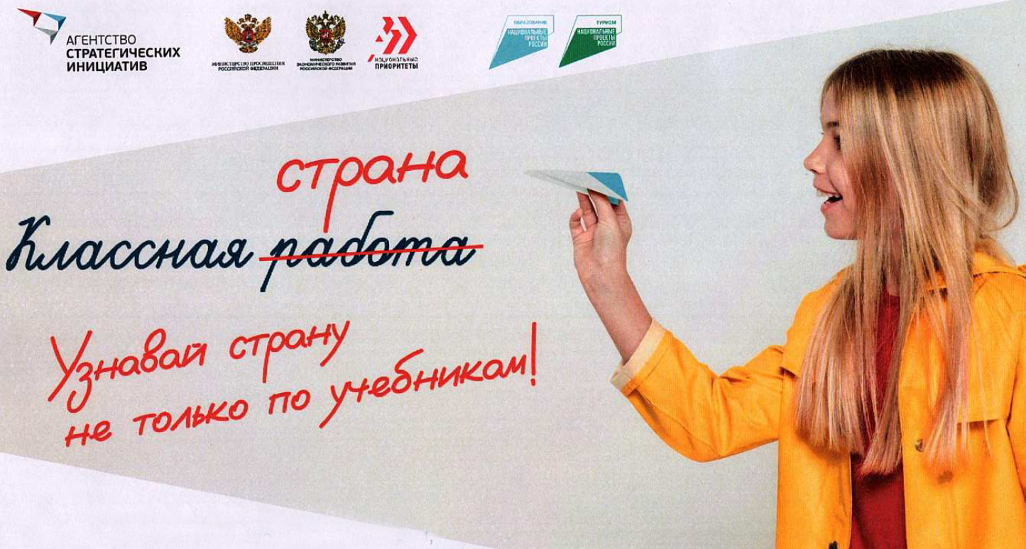 «Классная страна» – всероссийская программа Агентства стратегических инициатив по профориентации, самоопределению личности и гражданско-патриотическому воспитанию детей и молодежи с внедрением технологий создания программ путешествий в субъектах РФ.