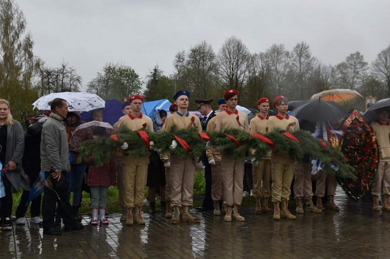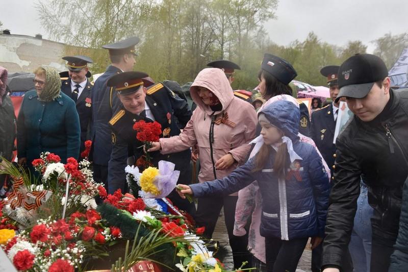 В память о тех, кто не вернулся с войны, прошла минута молчания, затем к подножию памятника возложили живые цветы.